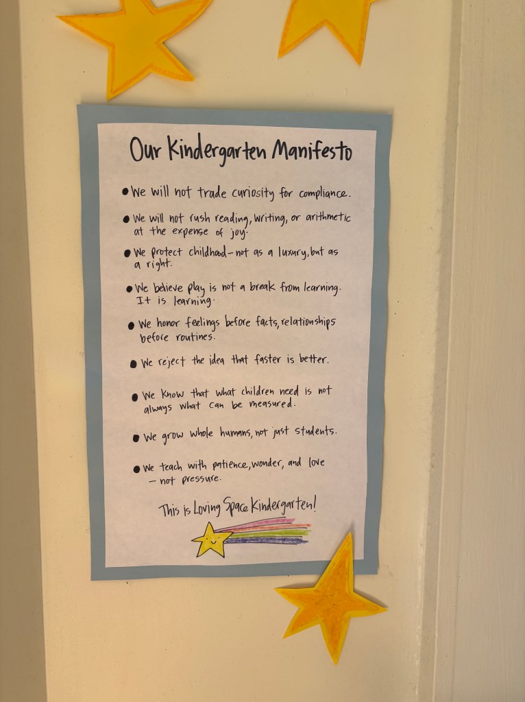 At Loving Space, children are actively engaged in their own learning. Our curriculum emphasizes small group work and content that is authentic to the developmental needs and curiosities of kindergartners. At 5 and 6 years old social emotional development is a top priority. During this time in a child’s life they are creating dispositions or attitudes about who they are, what they’re good at and how they fit into the world. If too much academic learning is pushed onto a child before they are developmentally ready it can be damaging, potentially causing a child to feel like school is not a place for them. Nathan Wallis, a famous neuroscientist says “Before 7 it’s not important how clever your child is, it’s how clever they feel.”