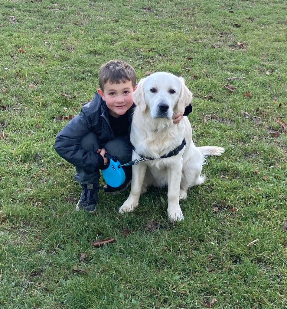 This is June! She’s an English Cream Retriever who works in the kindergarten with us. June is gentle, playful and brings a lot of joy to all of us at school. She greets everyone at the gate with a wagging tail looking for love and treats. June was awarded Good Canine Citizenship and passed her therapy dog training tests.